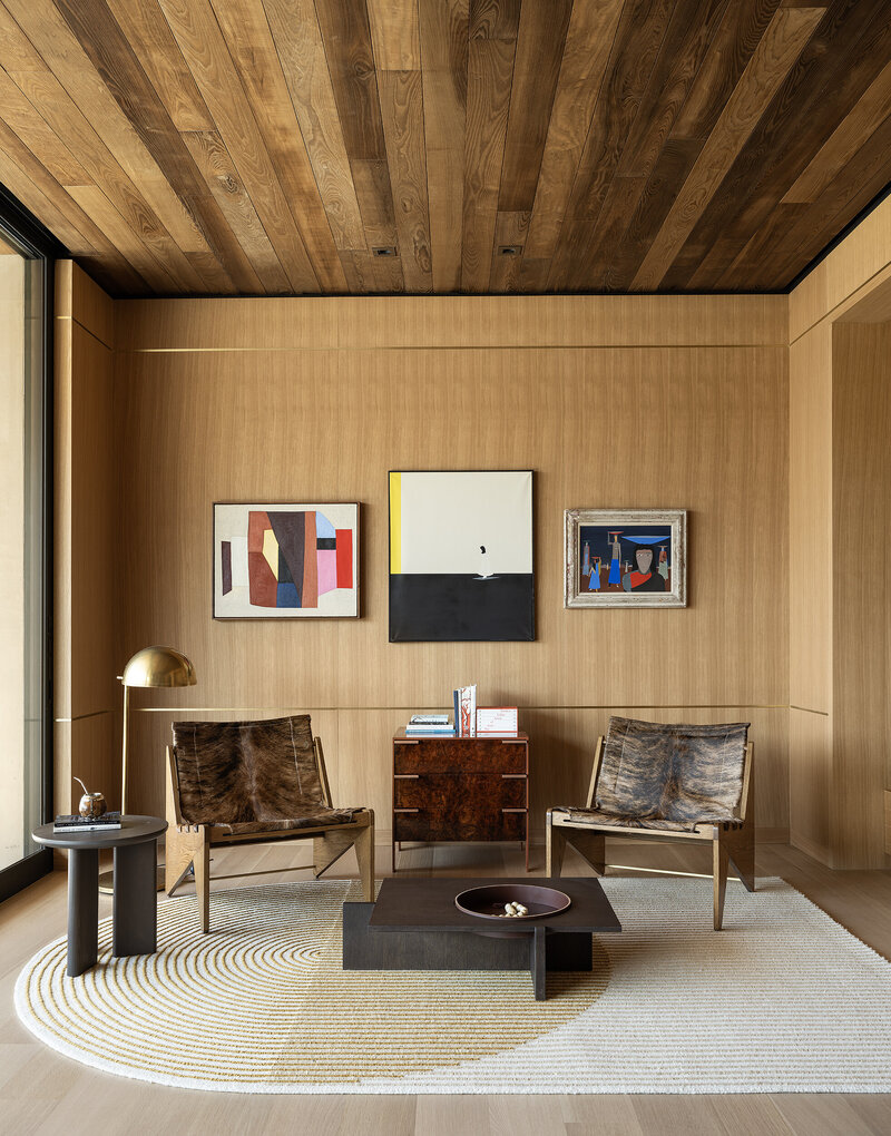 Rich layers of texture - walnut, stone, metals, and textiles - soften expansive rooms and create intimacy. The mix of eras and styles lends a collected feel, transforming vast square footage into spaces that feel personal and lived-in.