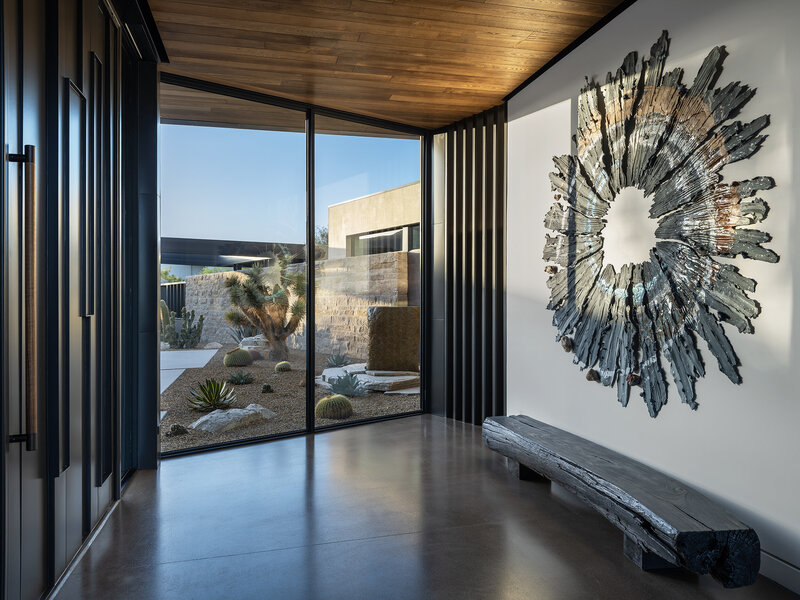 Throughout the interiors, collectible works from emerging and established artists create a gallery-like presence. Each piece was placed with intention, bringing dialogue and depth to the architecture while honoring the clients’ passion for art.